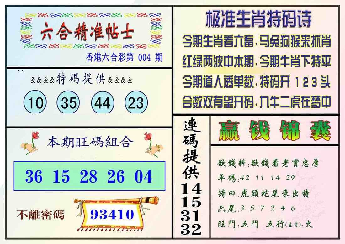004期精准贴士[图]