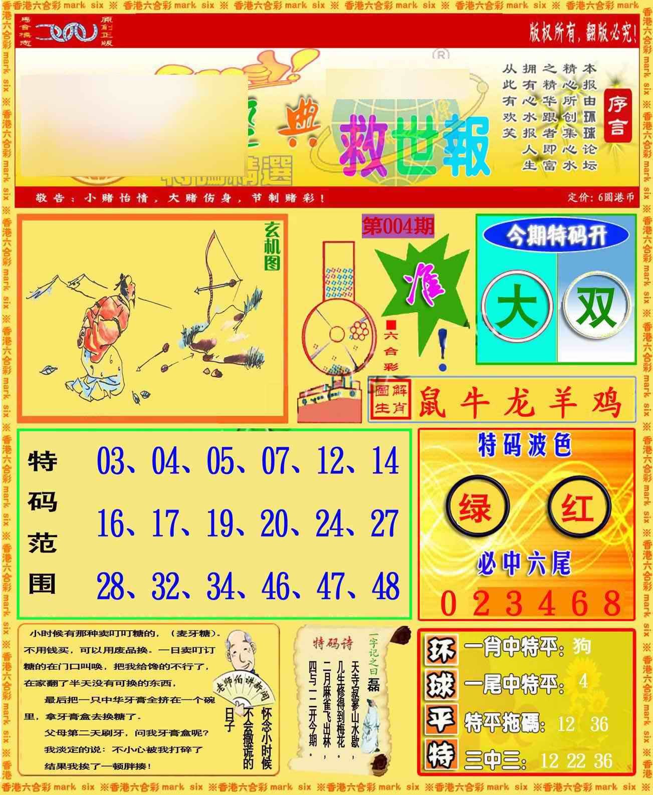 004期环球特码救世报[图]
