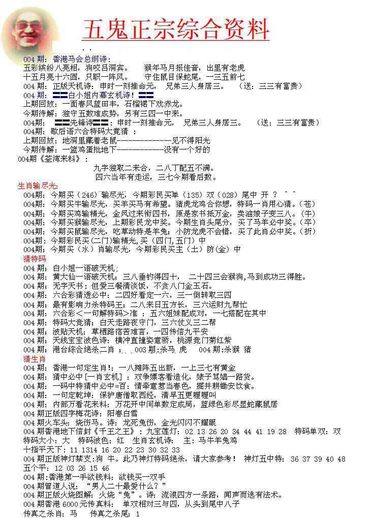 004期五鬼正宗会员综合资料A[图]