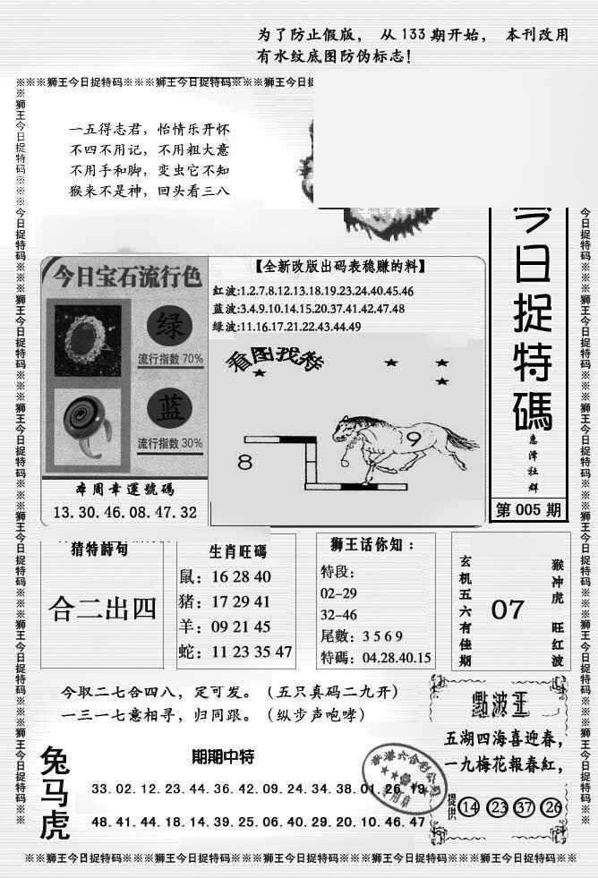 005期狮王今日抓特码[图]