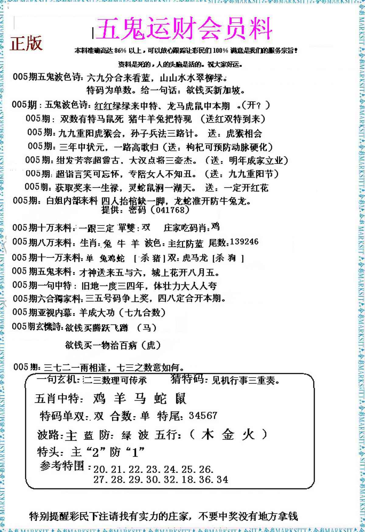 005期五鬼运财会员料[图]