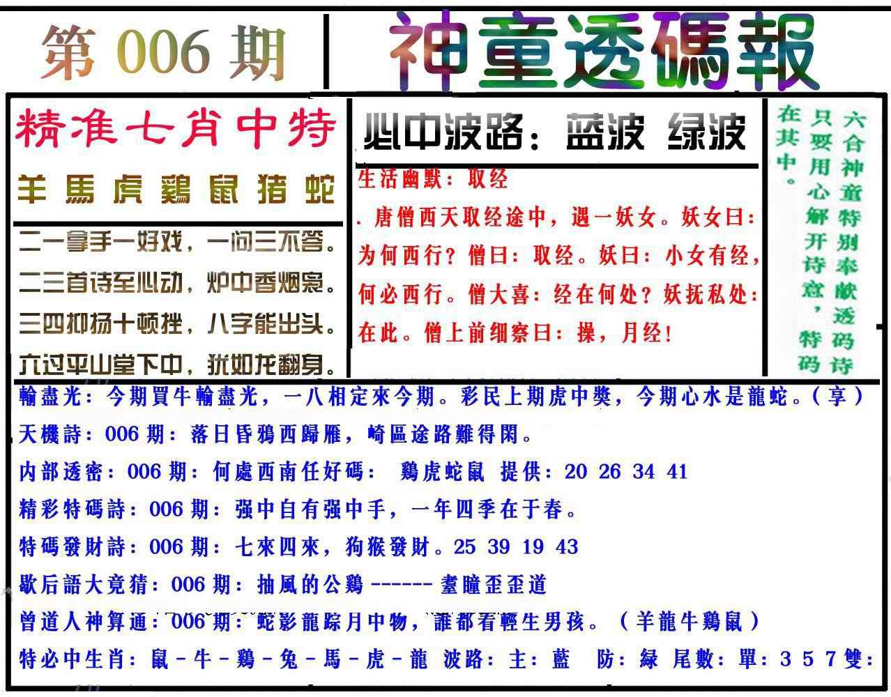 006期神童透码报(正版)[图]