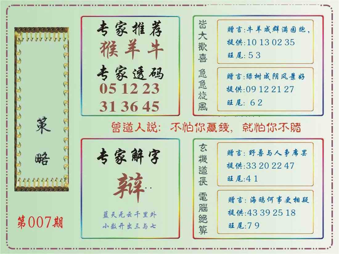 007期马经策略[图]