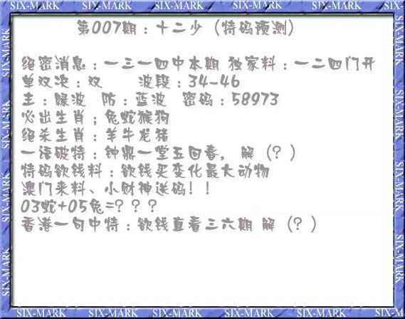 007期十二少(特码预测)[图]