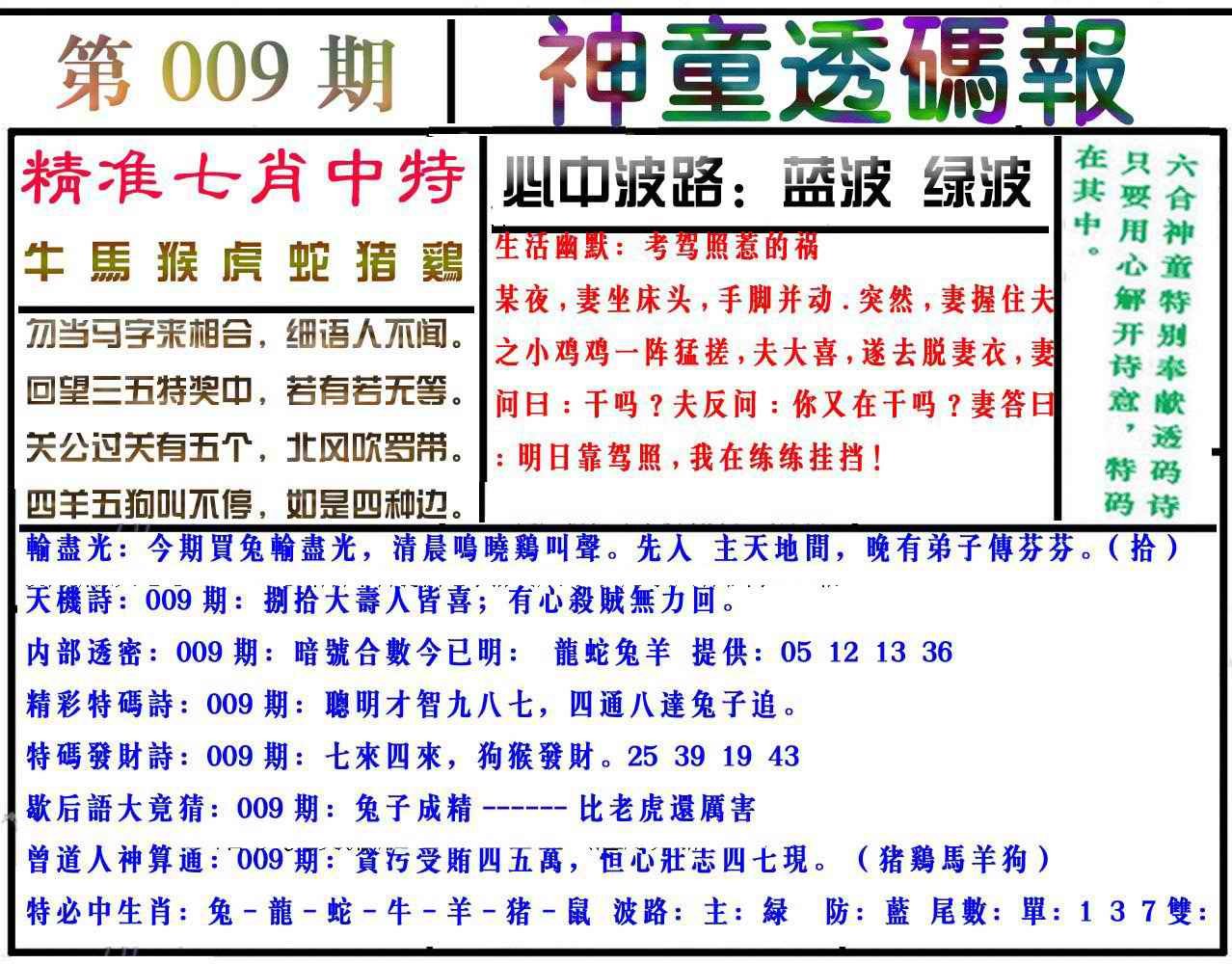 009期神童透码报(正版)[图]