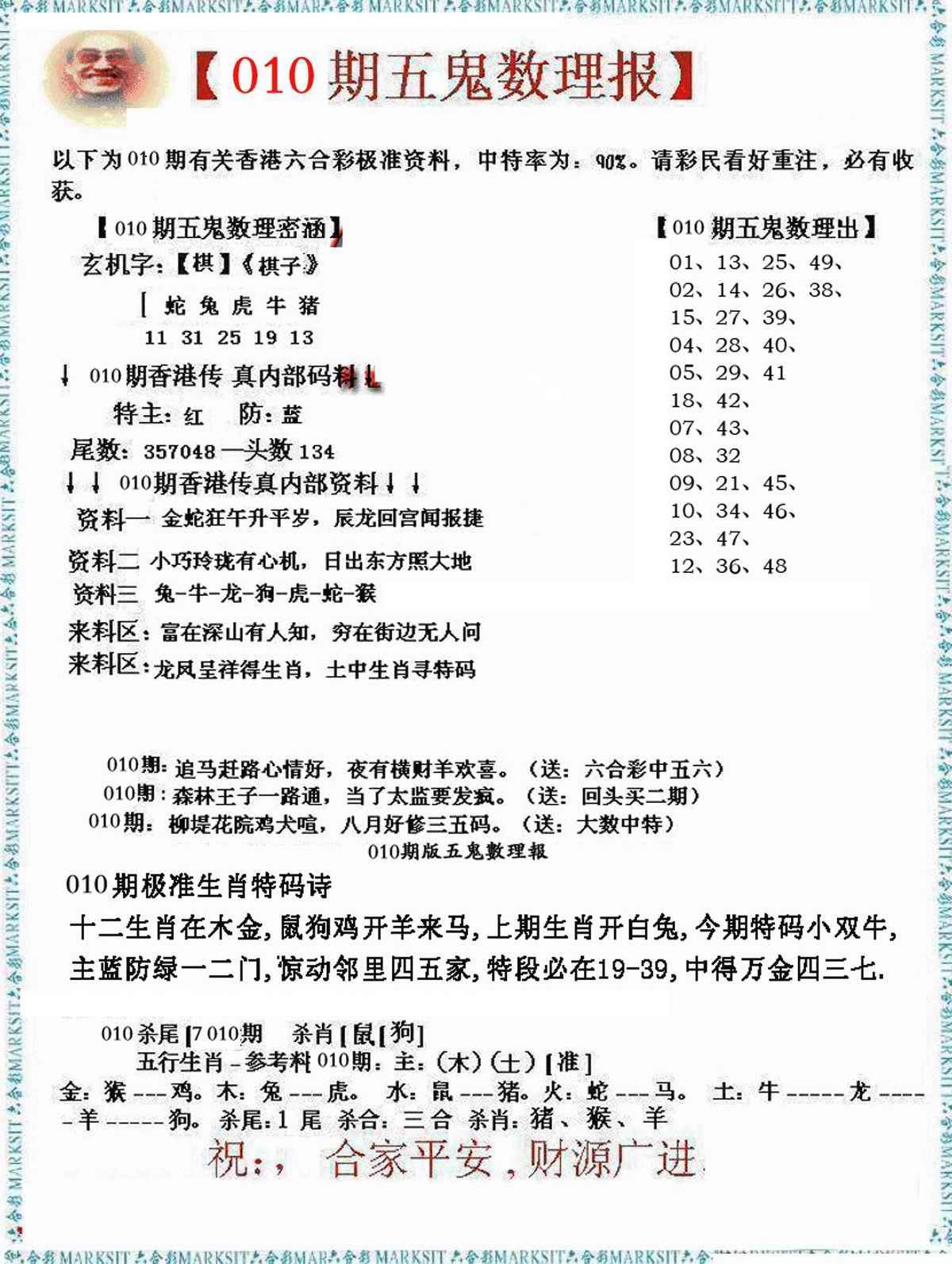 010期五鬼数理报[图]