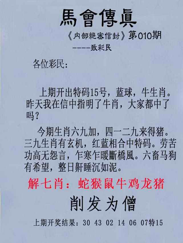 010期另版马会传真[图]