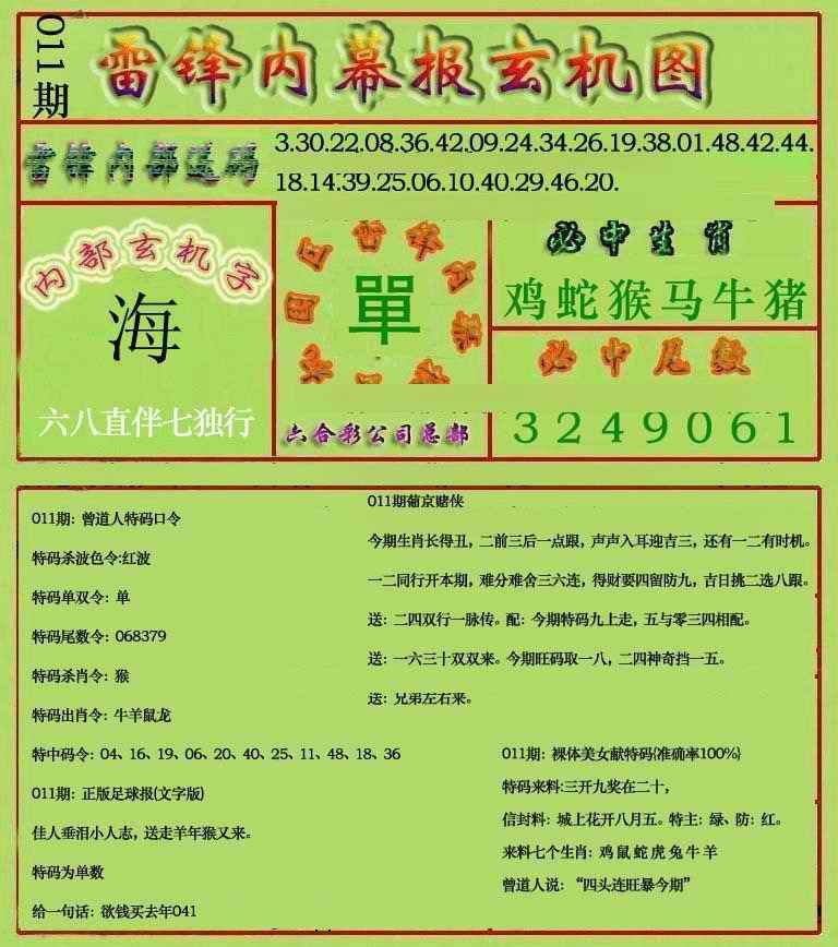 011期雷锋玄机报(新上市)[图]