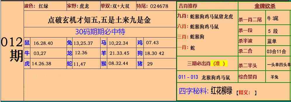 012期小鱼儿30码期期中[图]