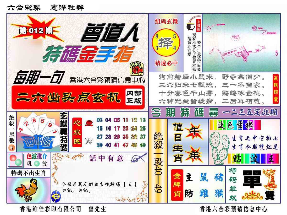 012期赠道人特马金手指[图]
