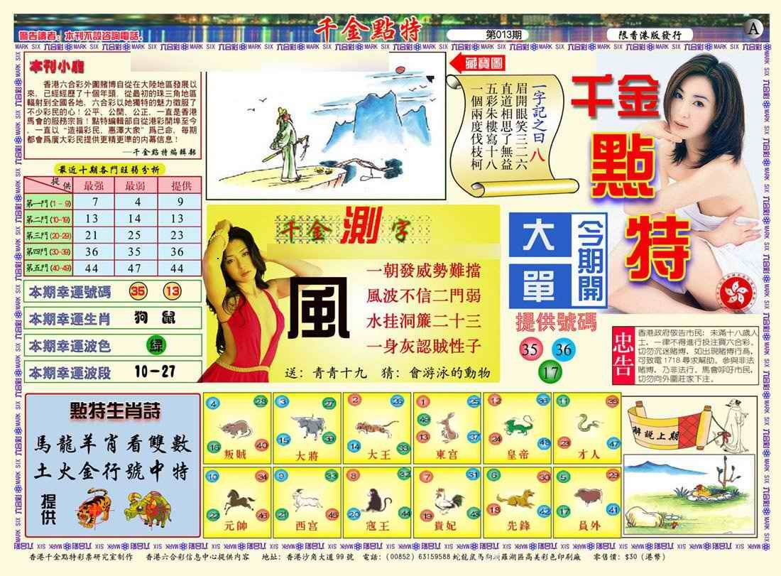 013期千金点特A(正版)[图]