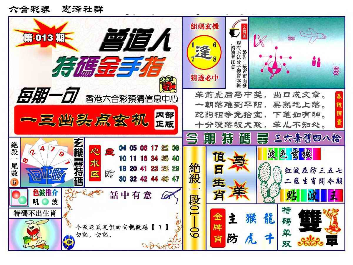 013期赠道人特马金手指[图]