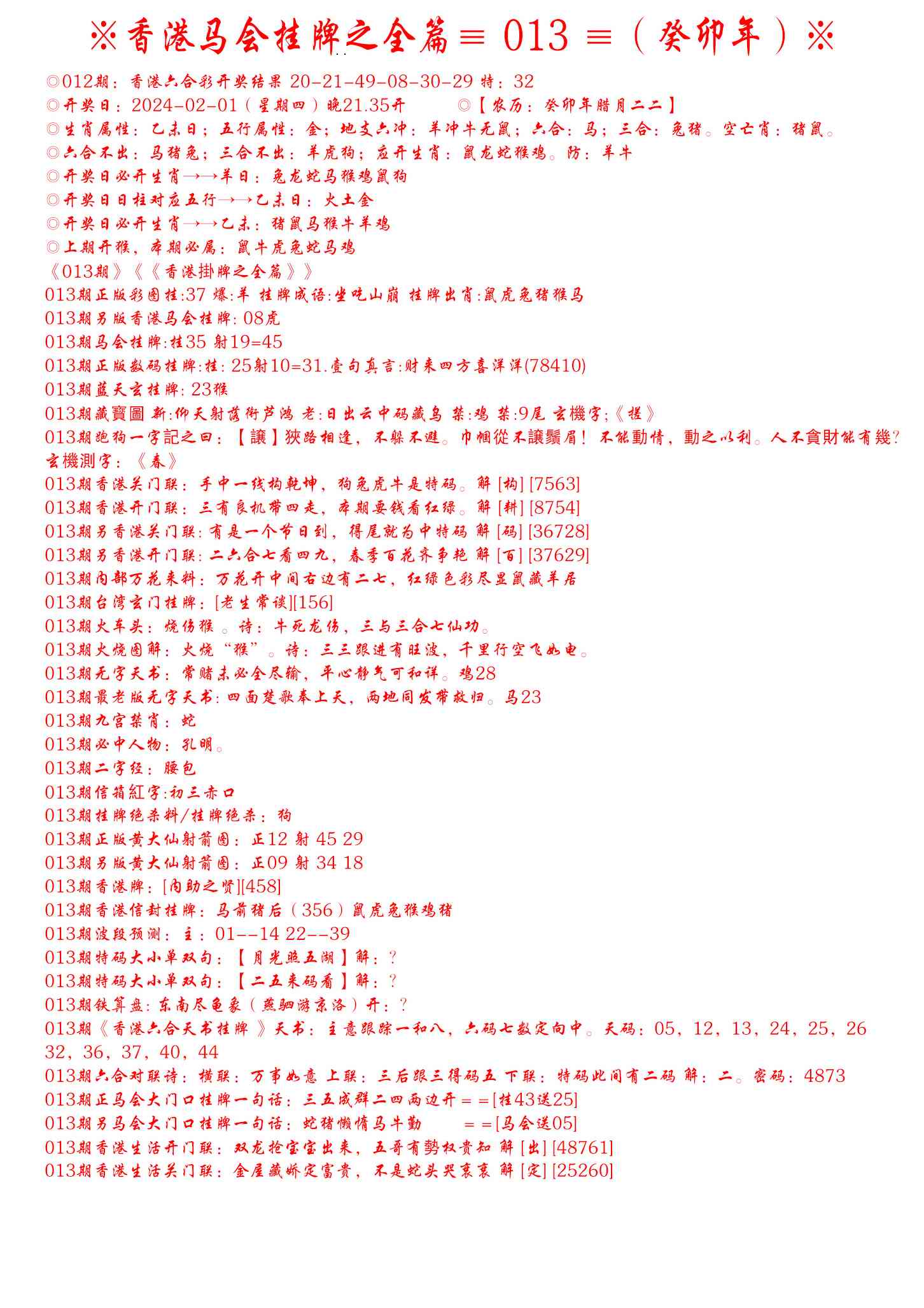 013期手写马会挂牌[图]