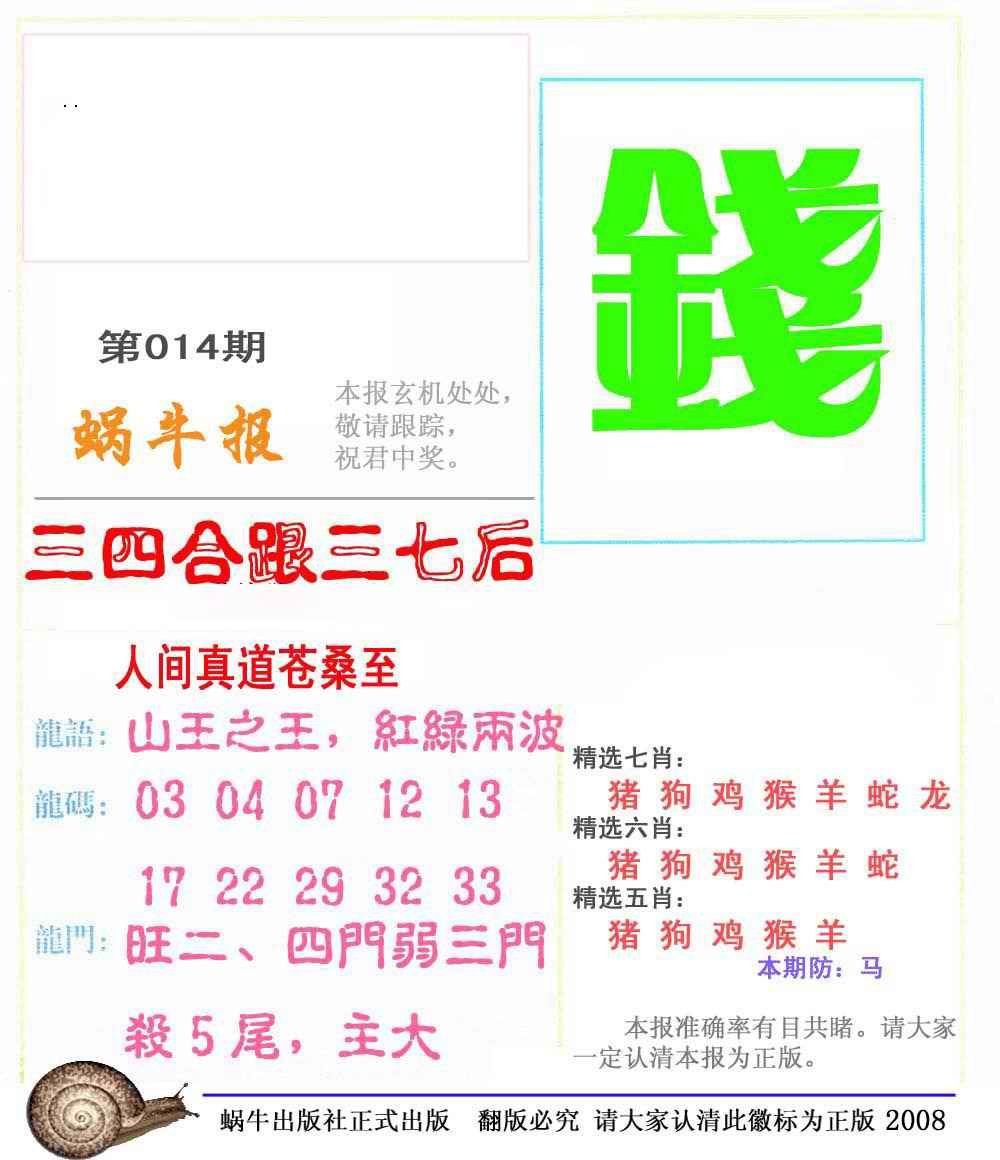 014期蜗牛彩报(正版)[图]