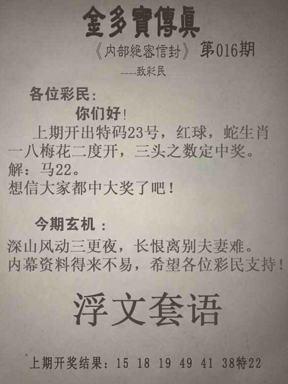 016期金多宝传真[图]