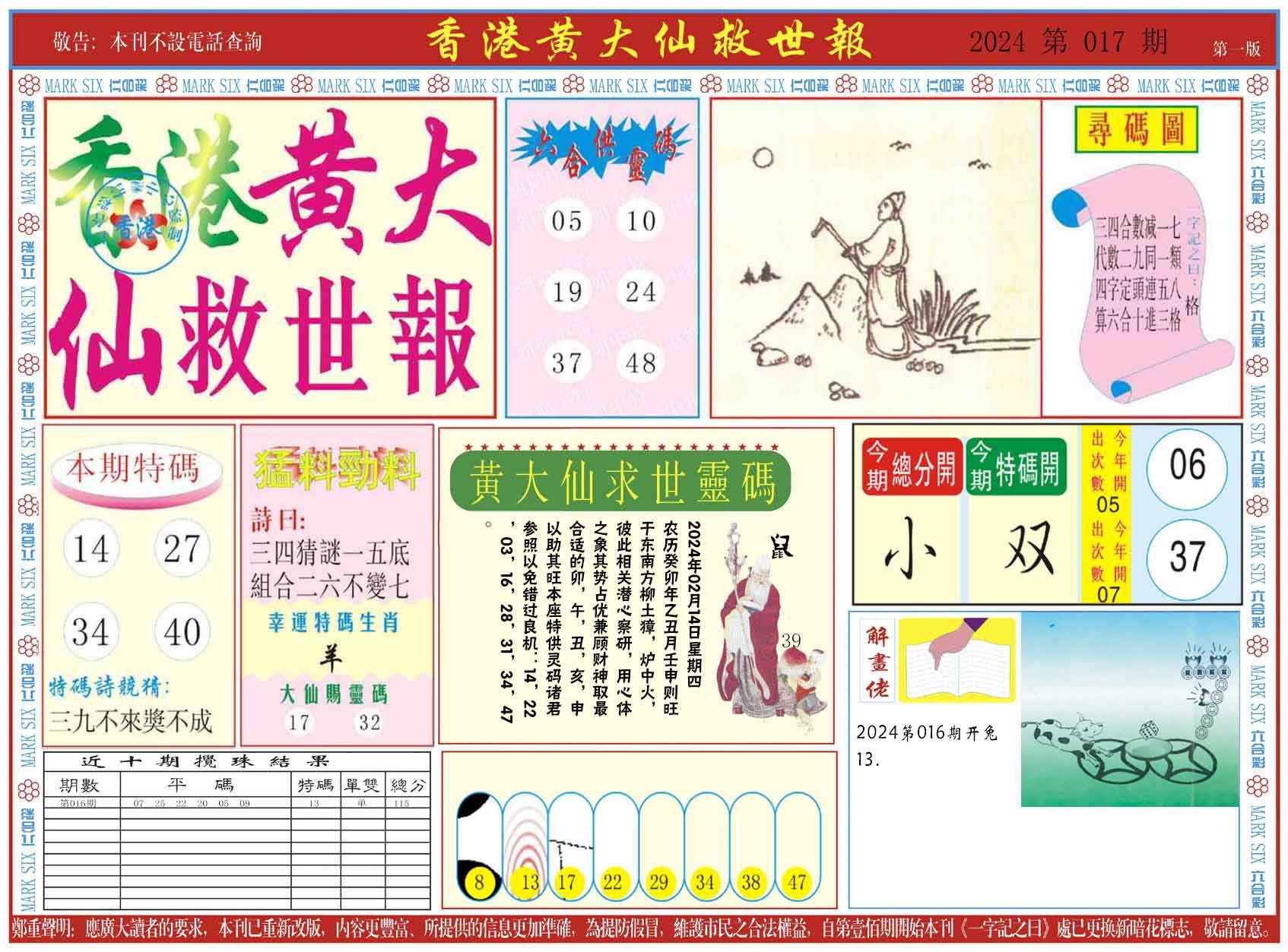 新黄大仙救世A