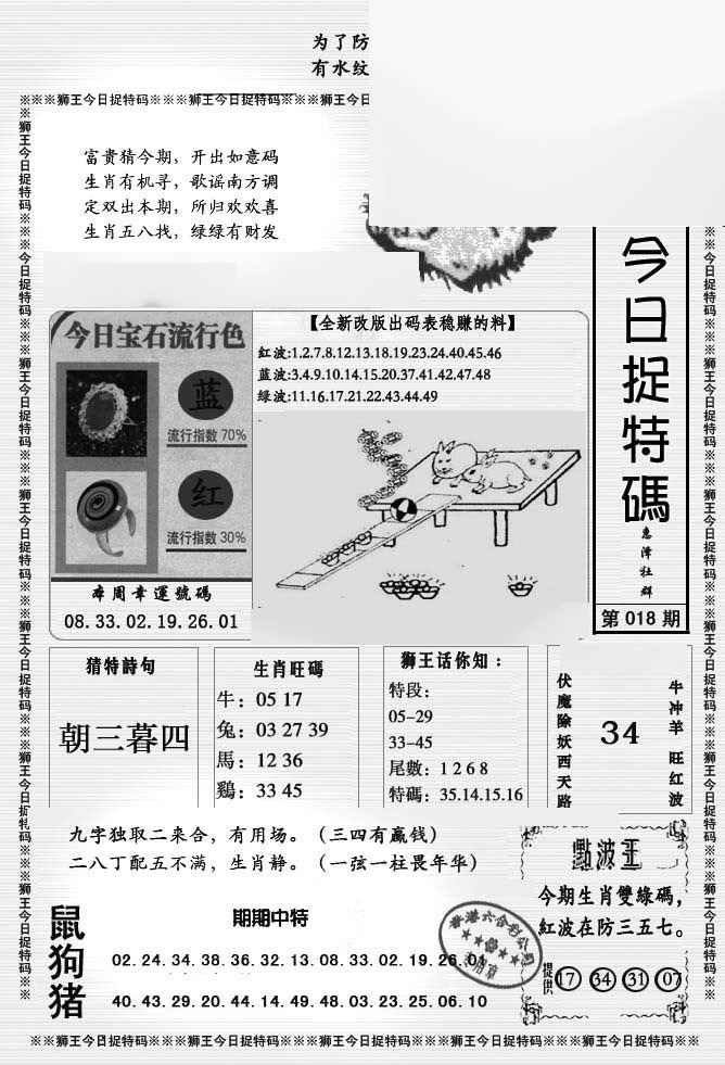 018期狮王今日抓特码[图]