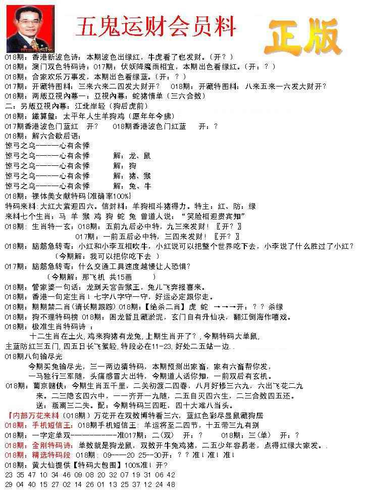 018期正版五鬼运财会员料[图]