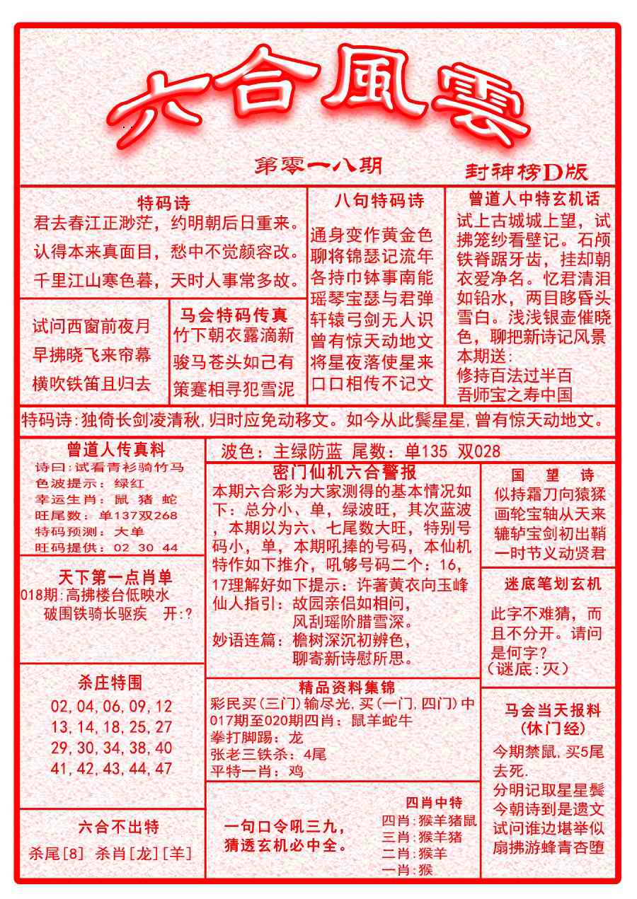 018期六合风云A面[图]