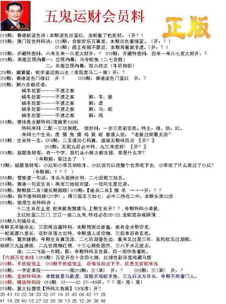 019期正版五鬼运财会员料[图]