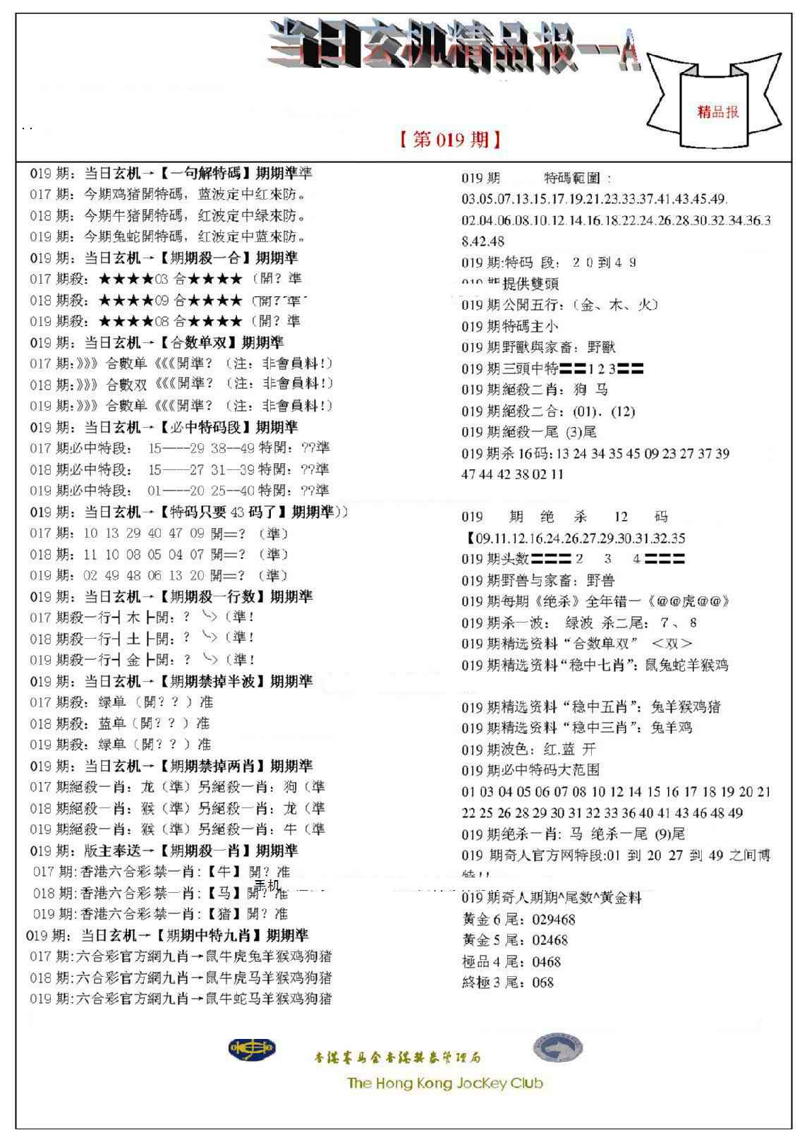 019期当日玄机精品报A[图]