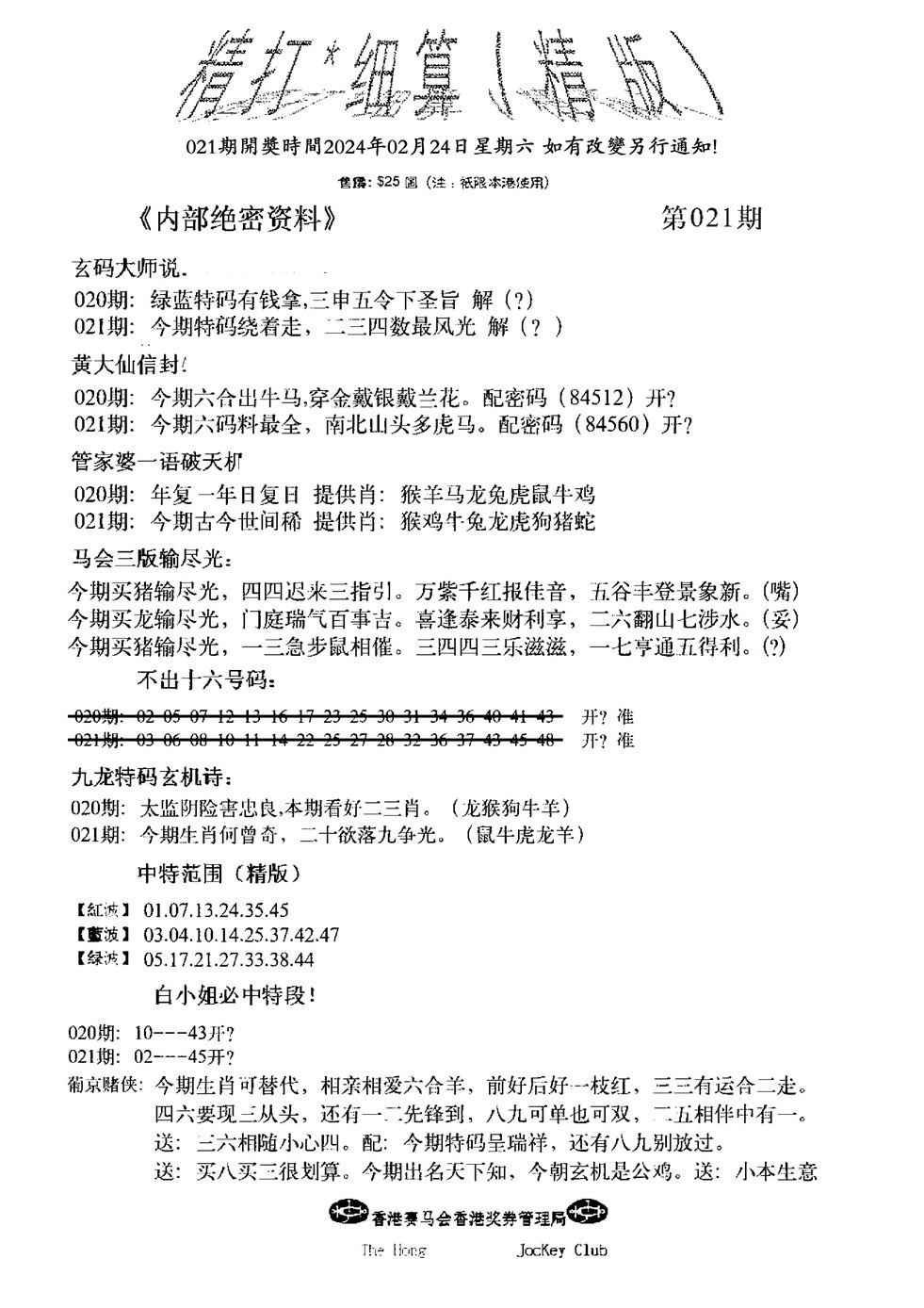 021期精大细算精版(新图)[图]
