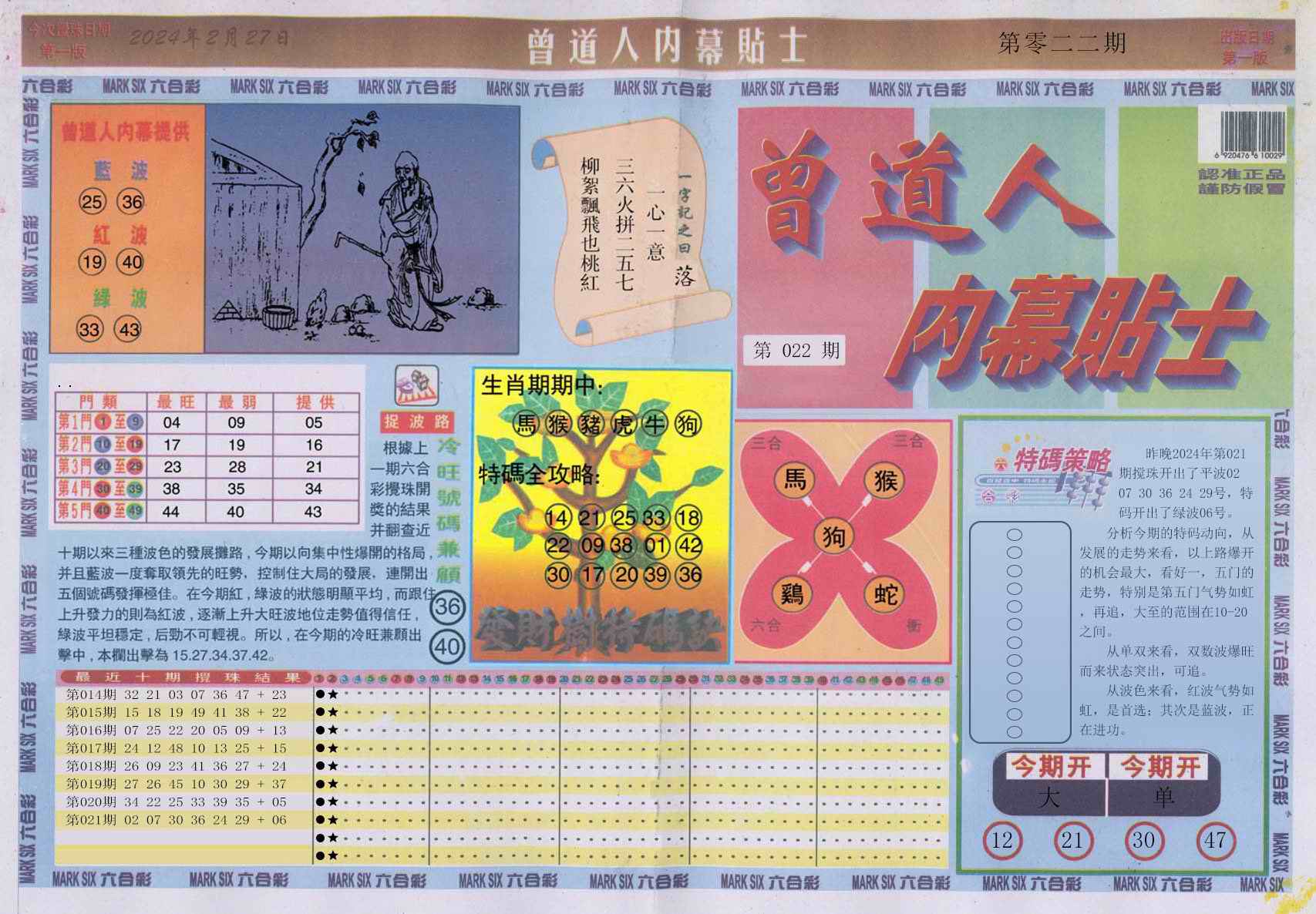 022期曾道人内幕贴士A[图]