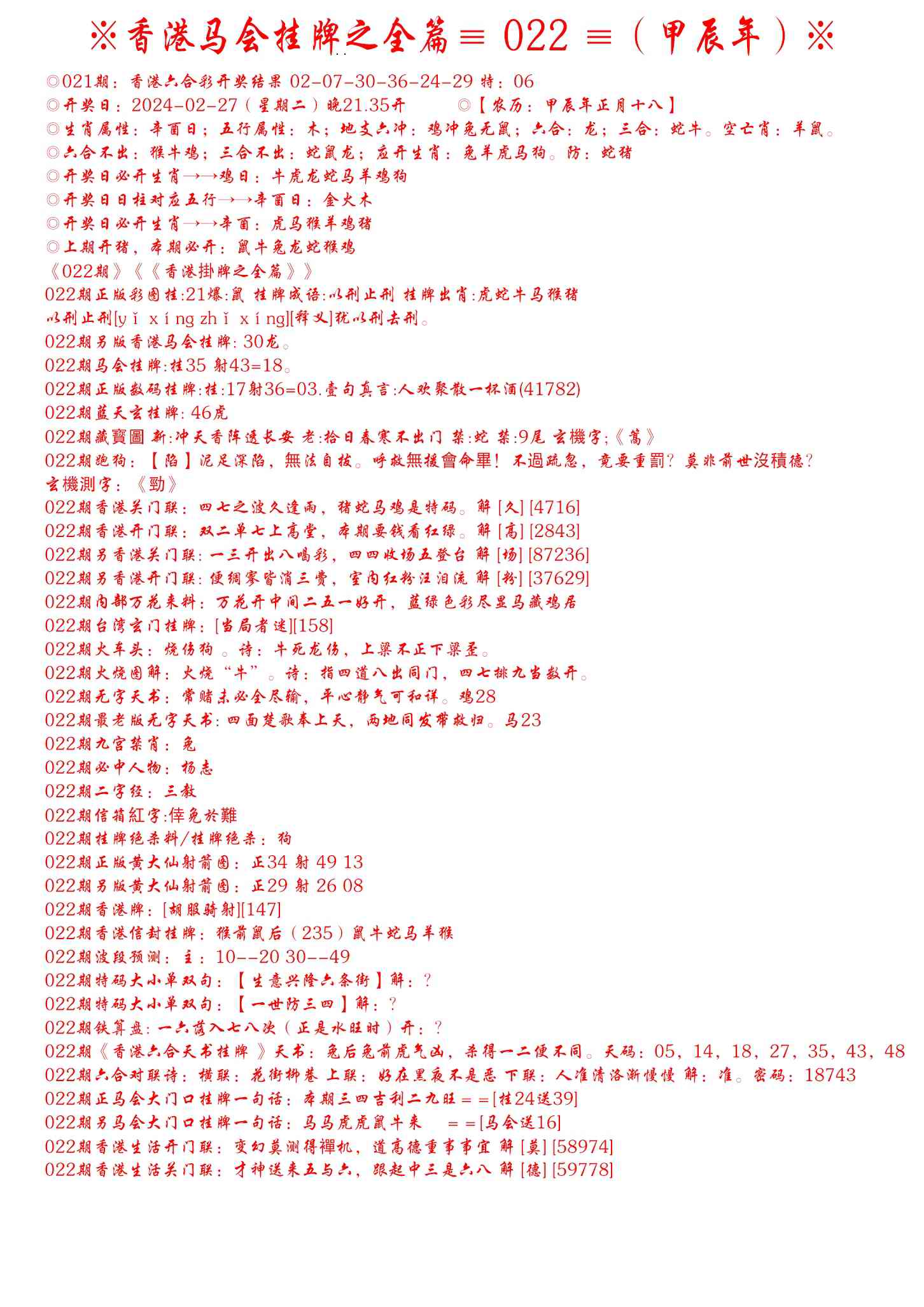 022期手写马会挂牌[图]