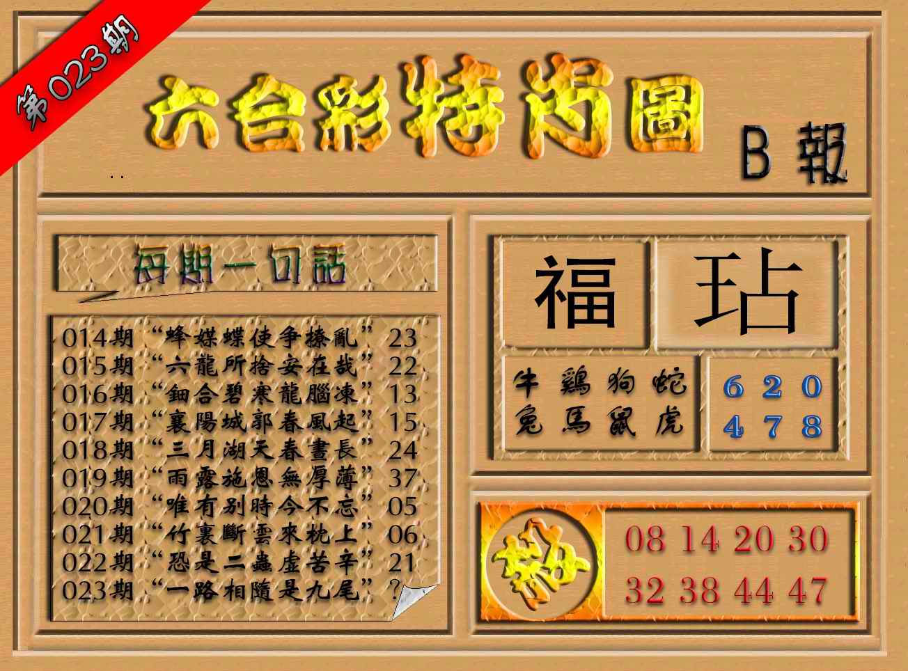 023期六合彩特肖图(B报)[图]