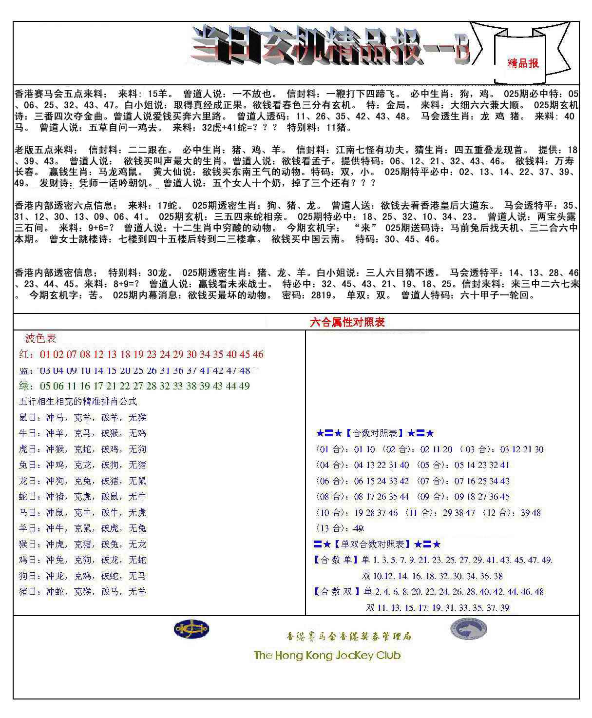 025期当日玄机精品报B[图]