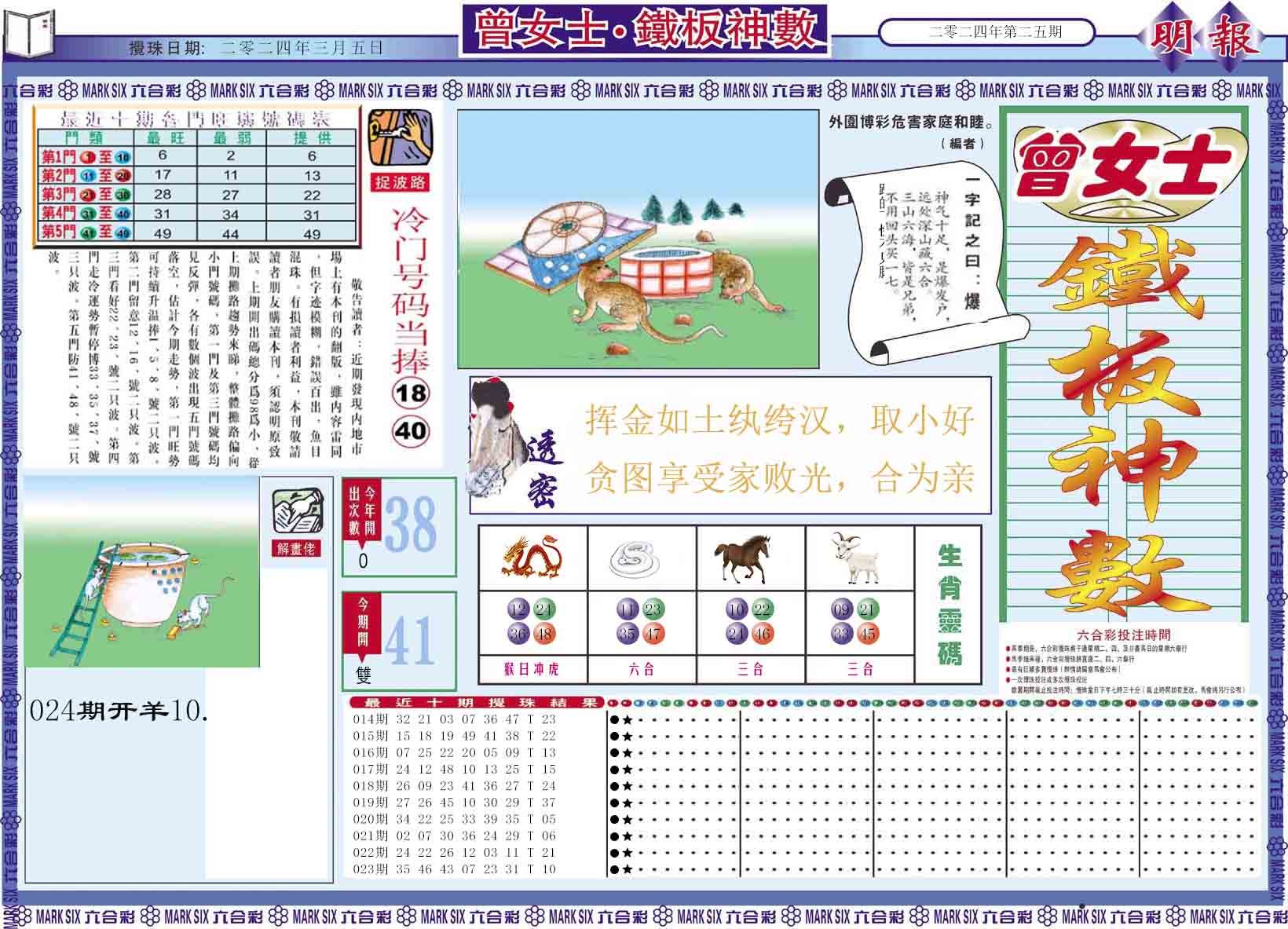 025期曾女士铁板神数A[图]