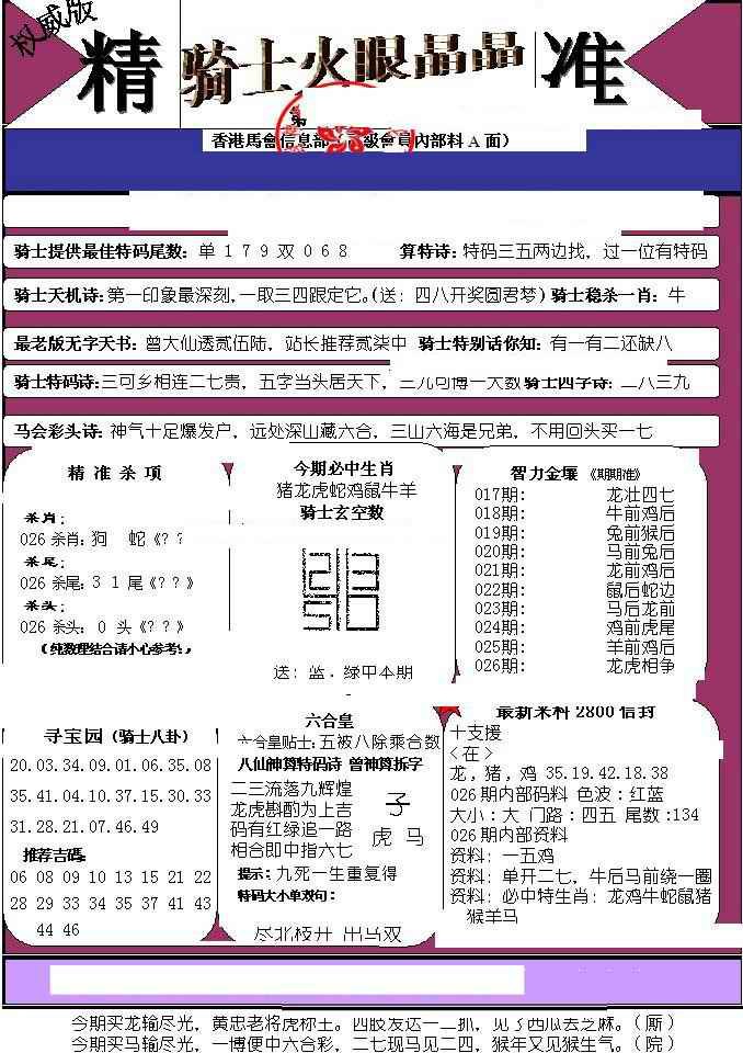 026期骑士火眼晶晶(正)[图]