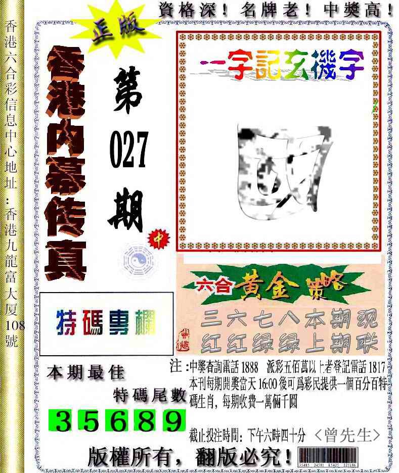 027期香港内幕传真信封图[图]