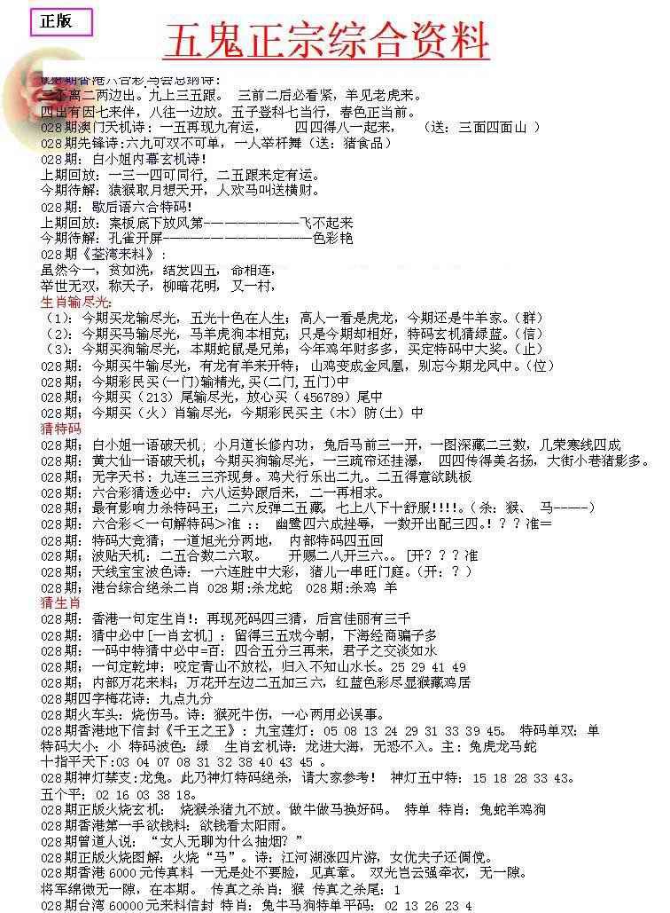 028期五鬼正宗会员综合资料A[图]