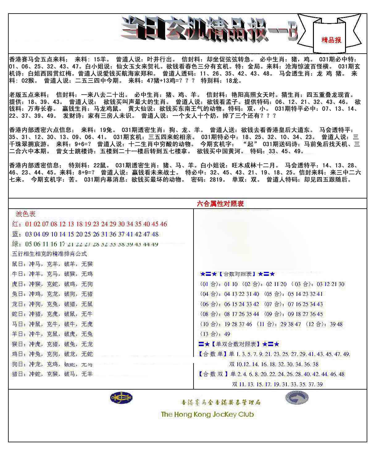 031期当日玄机精品报B[图]