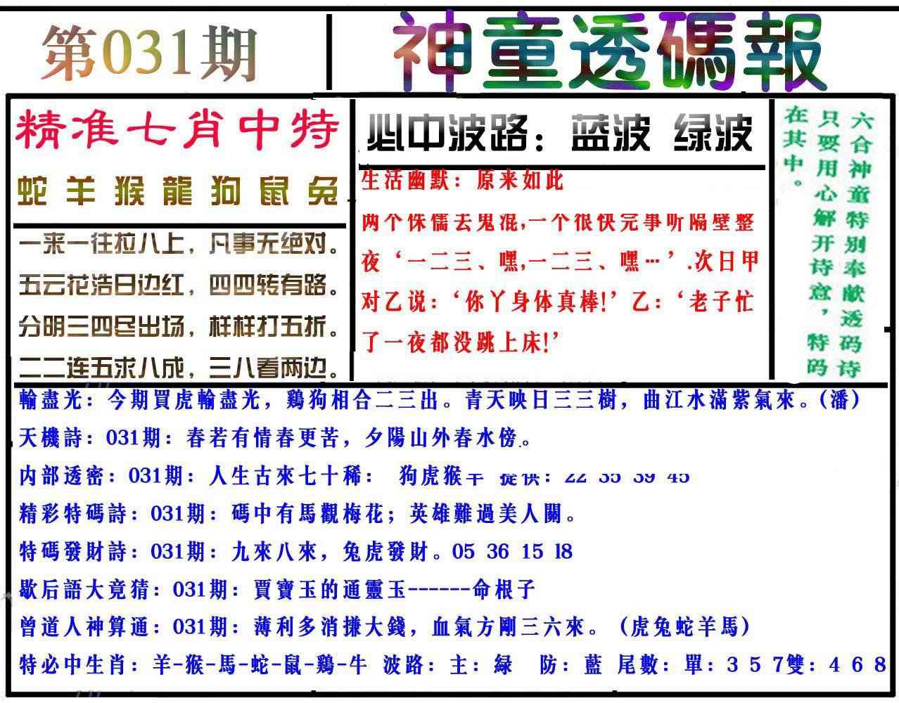 031期神童透码报(正版)[图]