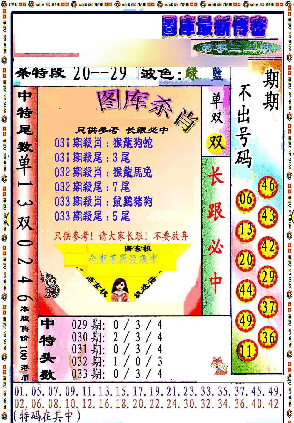 033期最新传密绝杀6肖[图]