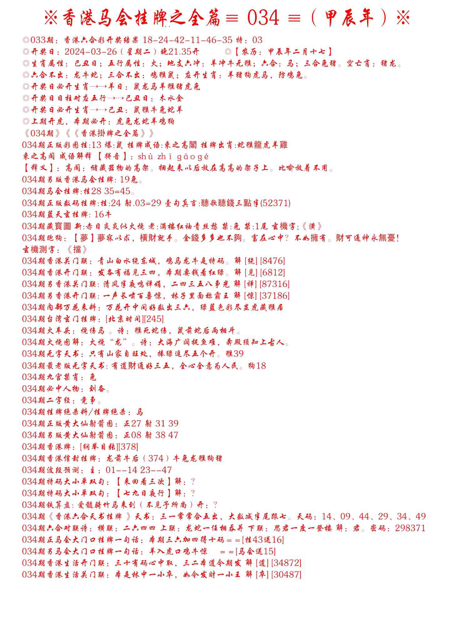 034期手写马会挂牌[图]