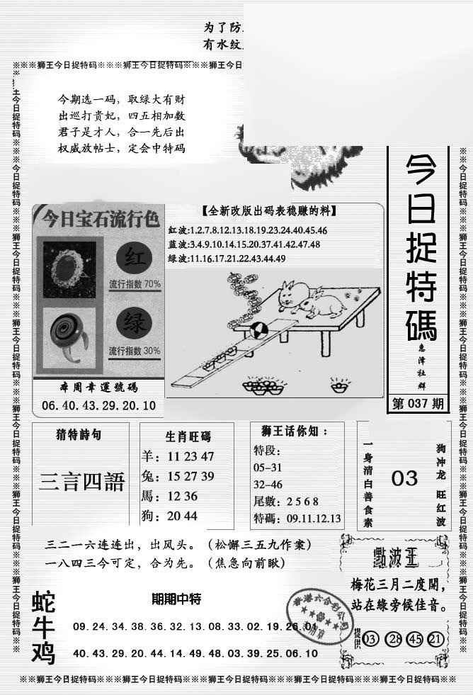 037期狮王今日抓特码[图]