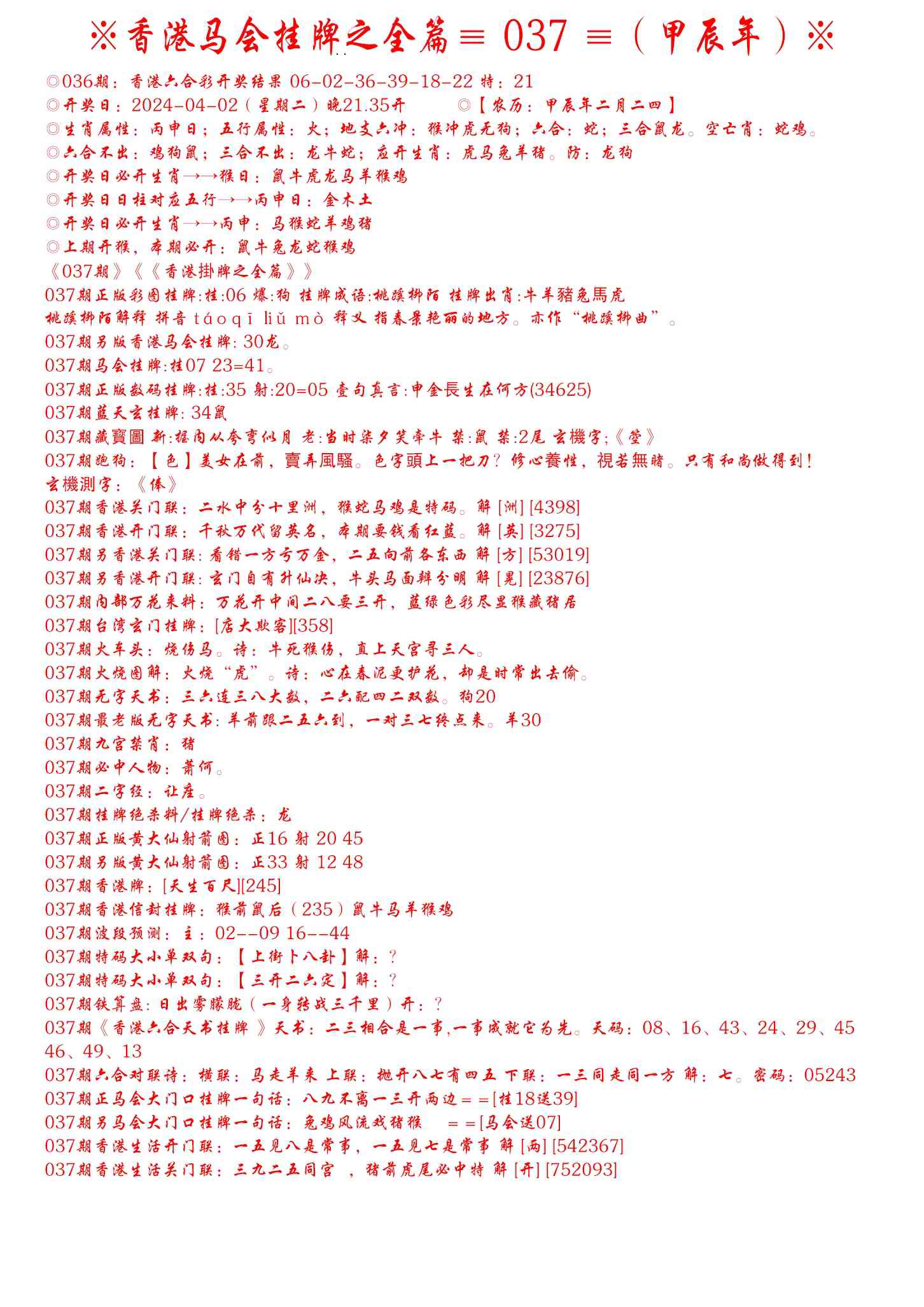 037期手写马会挂牌[图]