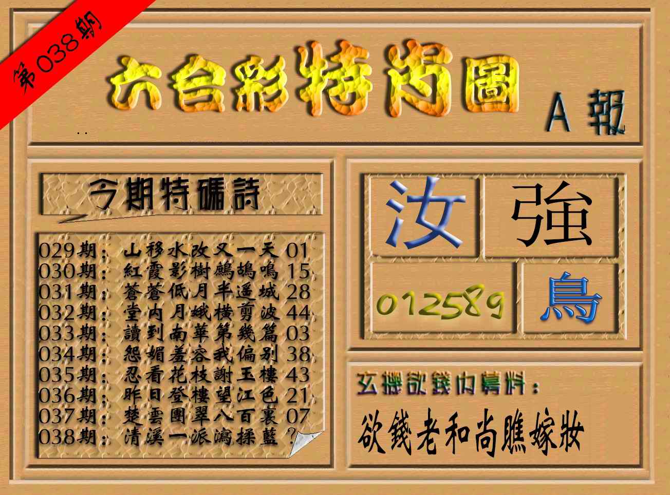 038期六合彩特肖图(A报)[图]