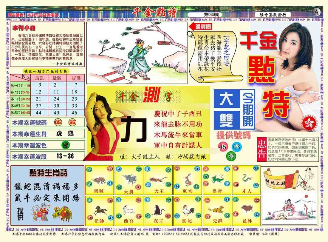 039期千金点特A(正版)[图]