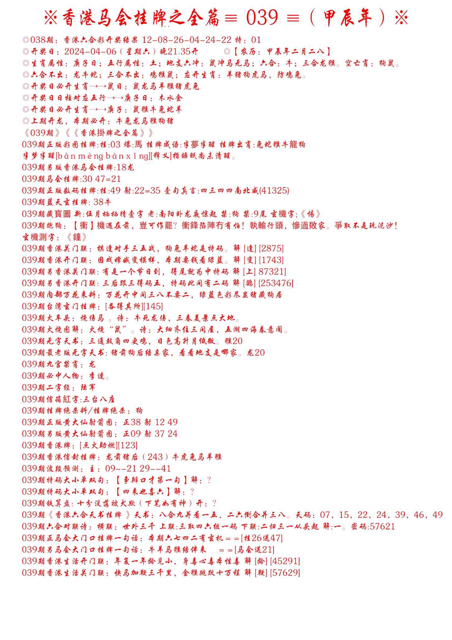 039期手写马会挂牌[图]