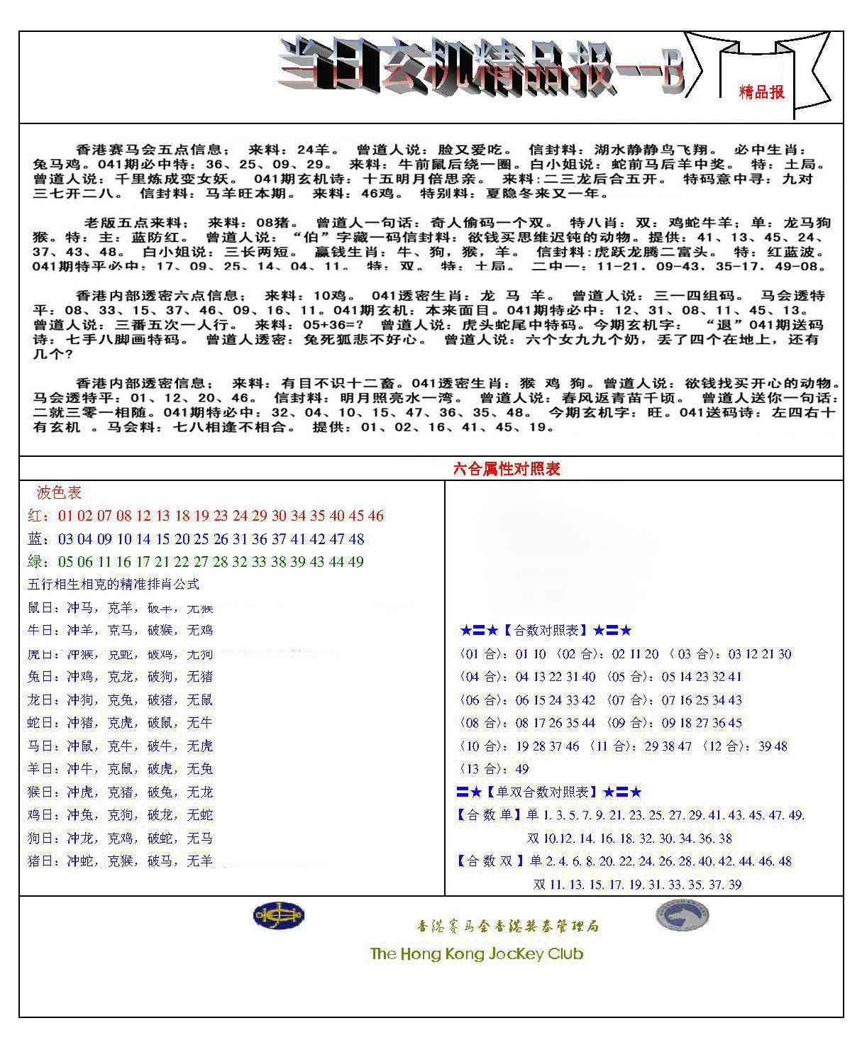 041期当日玄机精品报B[图]