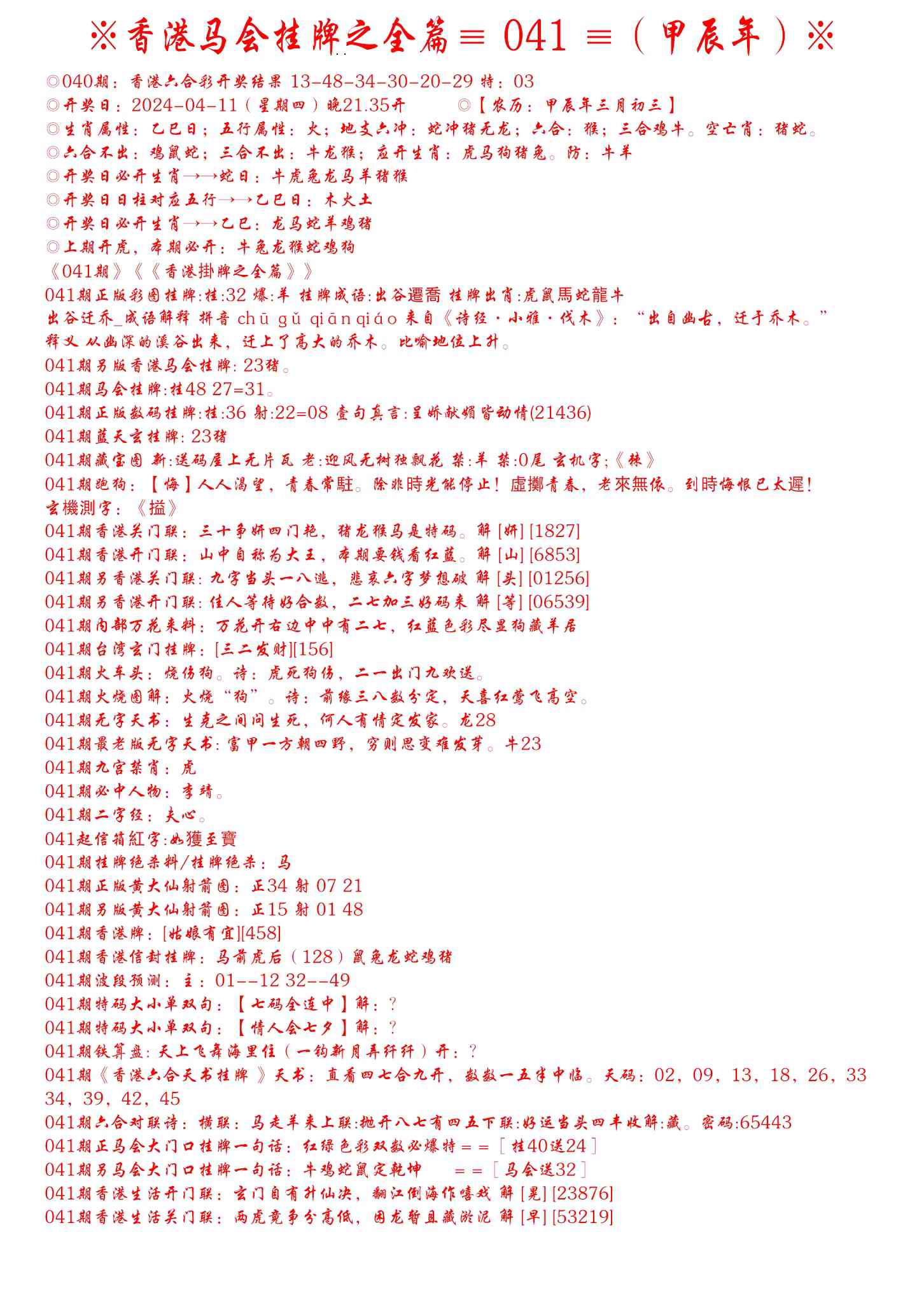 041期手写马会挂牌[图]