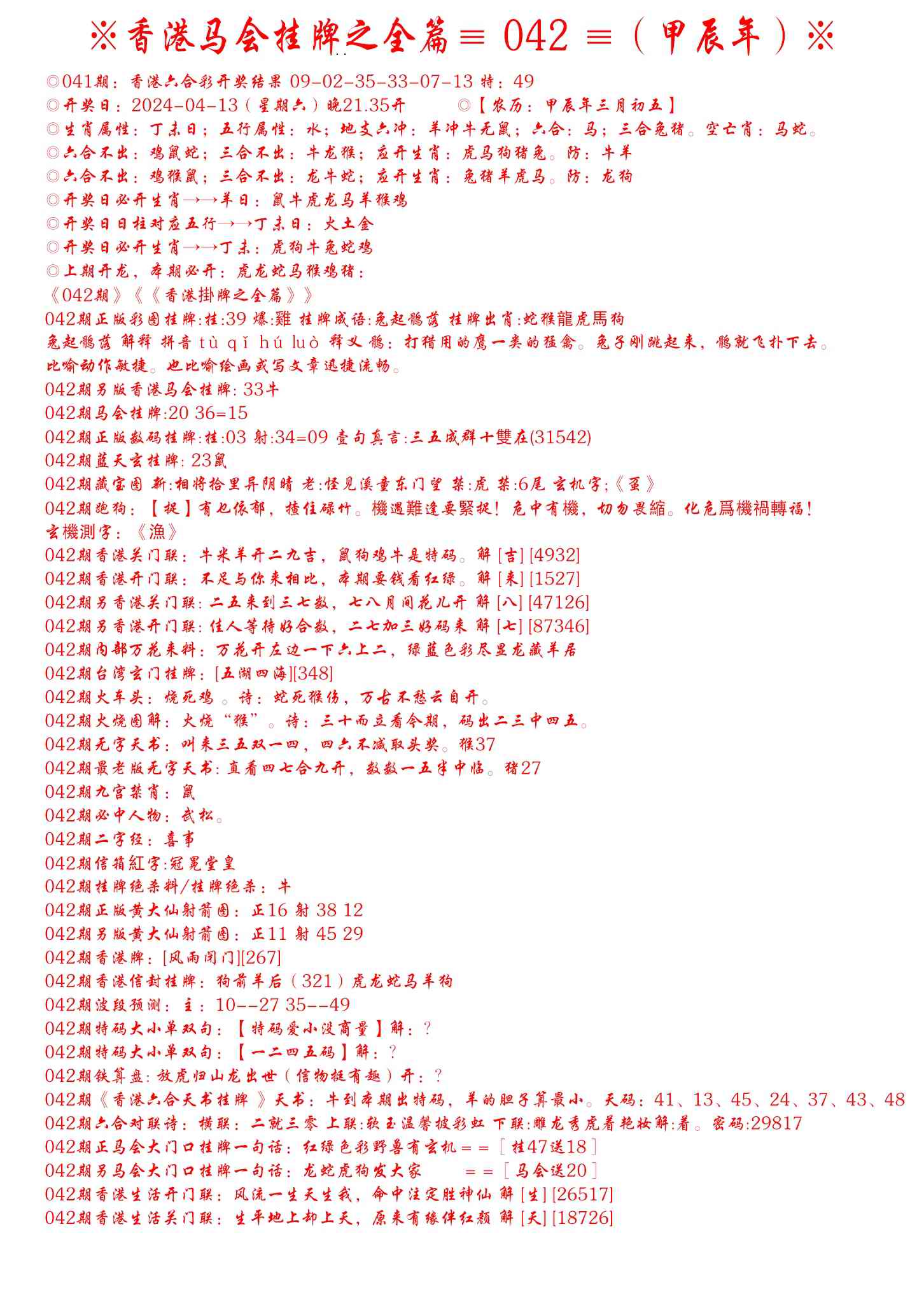 042期手写马会挂牌[图]