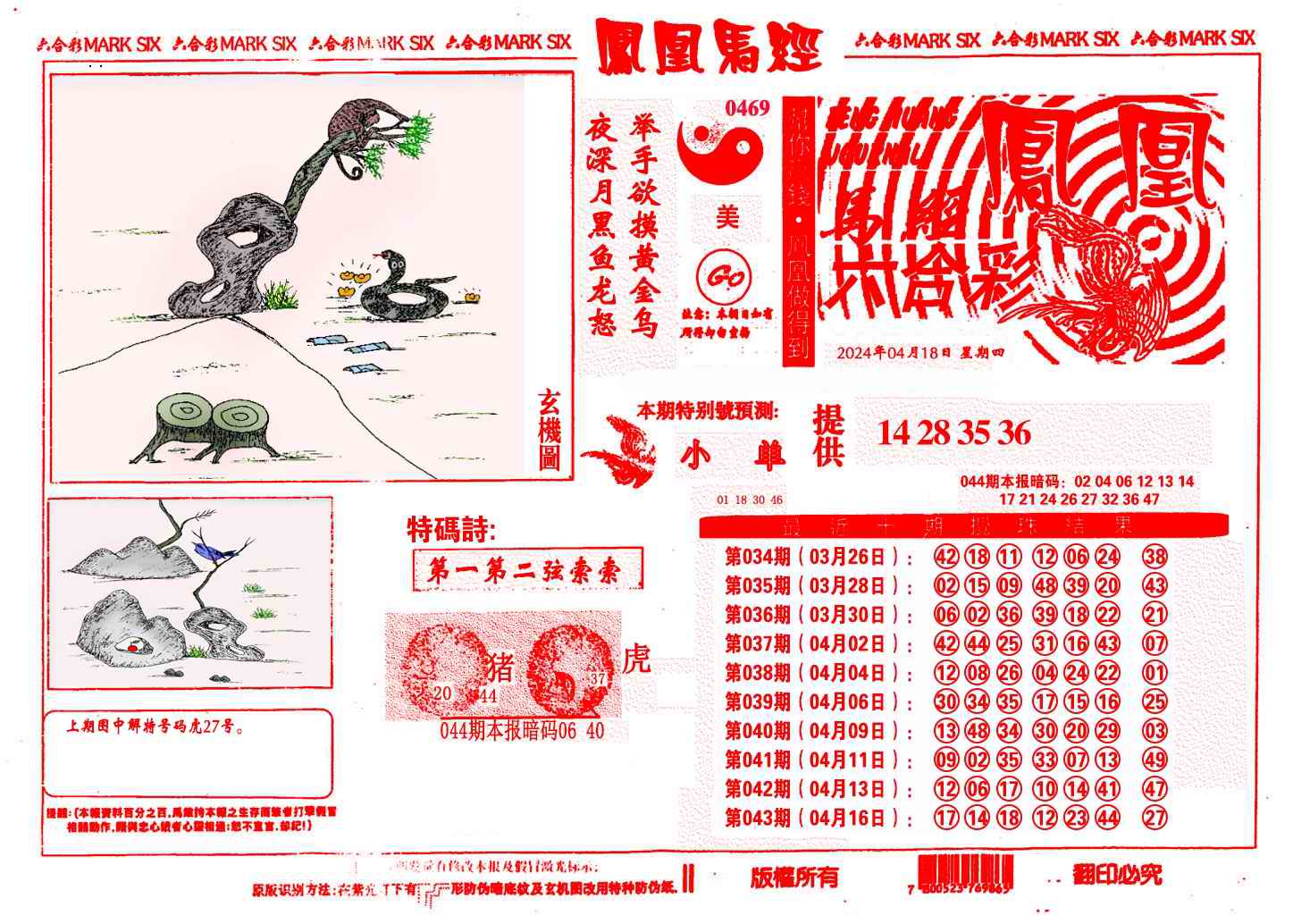 044期凤凰马经(信封)[图]