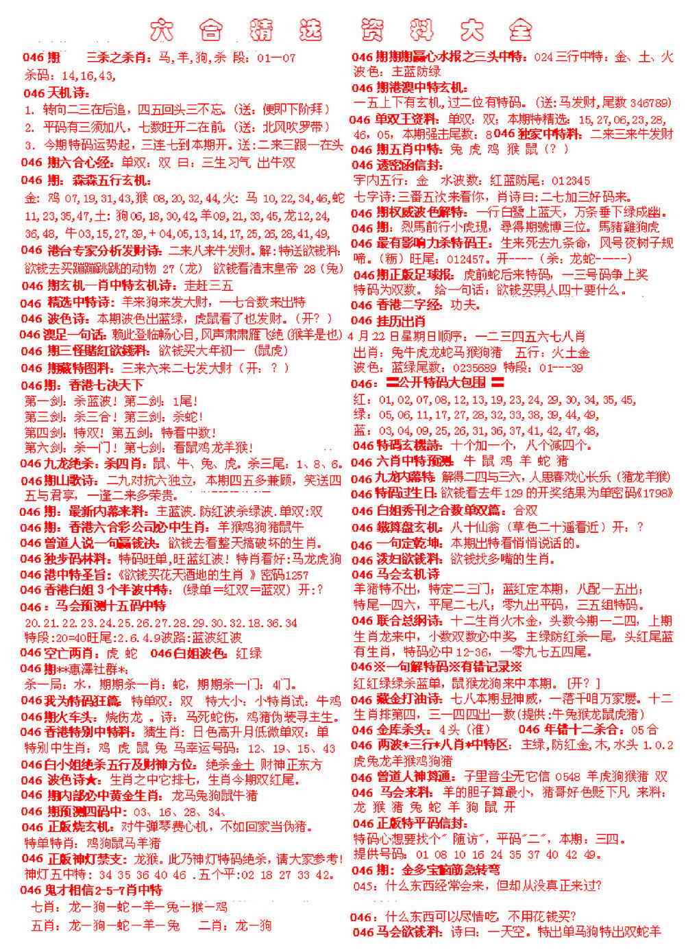 046期六合精选资料大全[图]