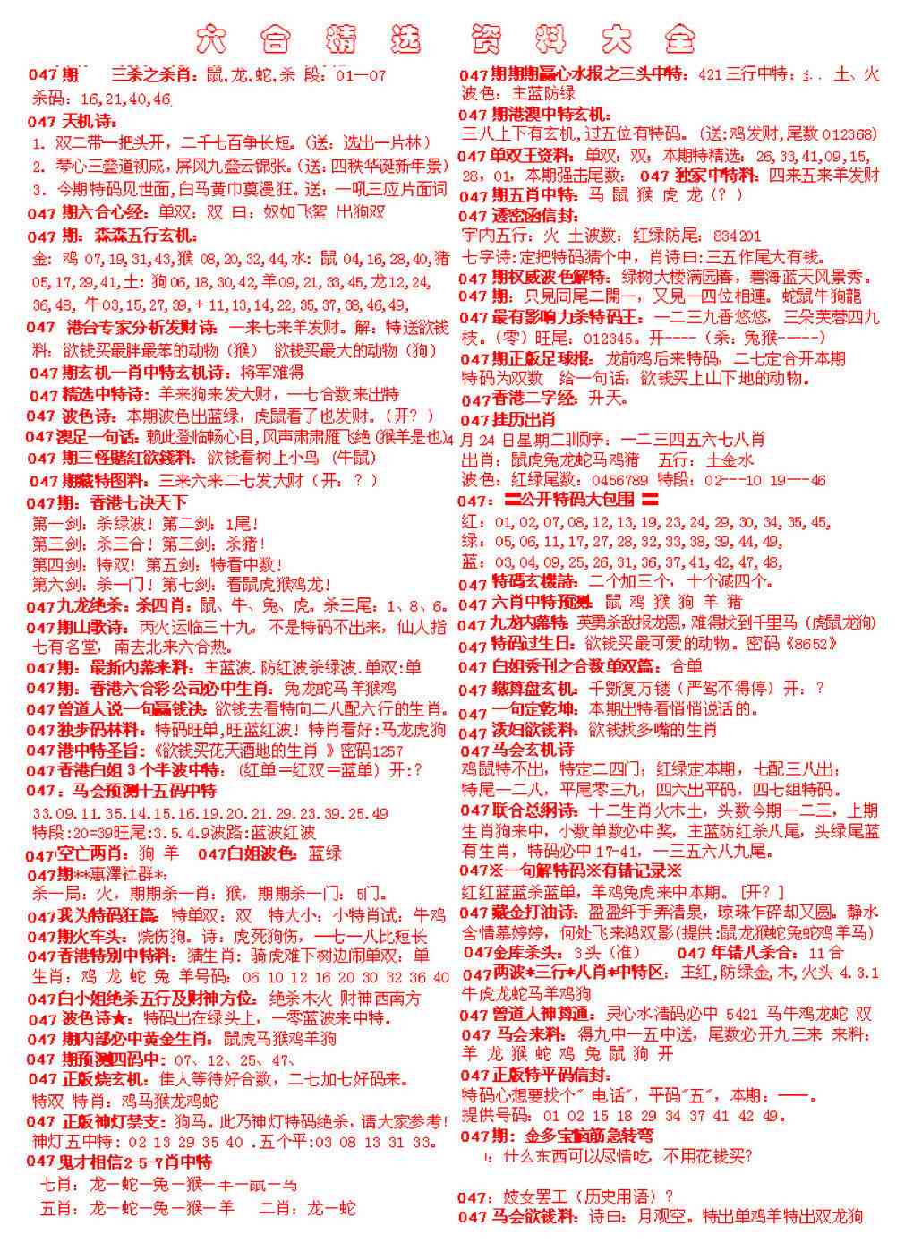 047期六合精选资料大全[图]