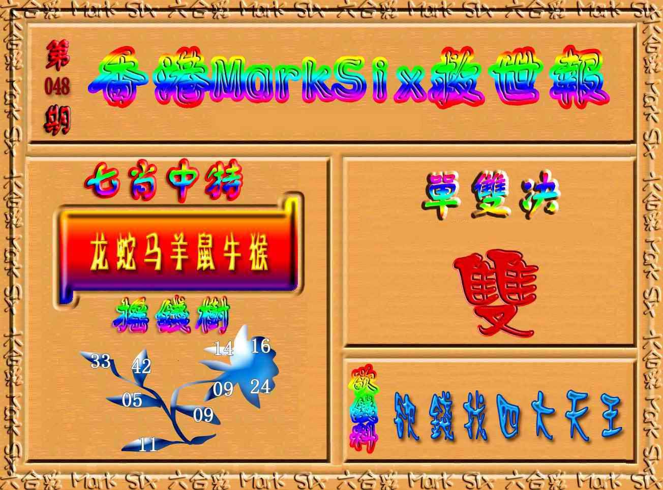048期香港MarkSix救世报[图]